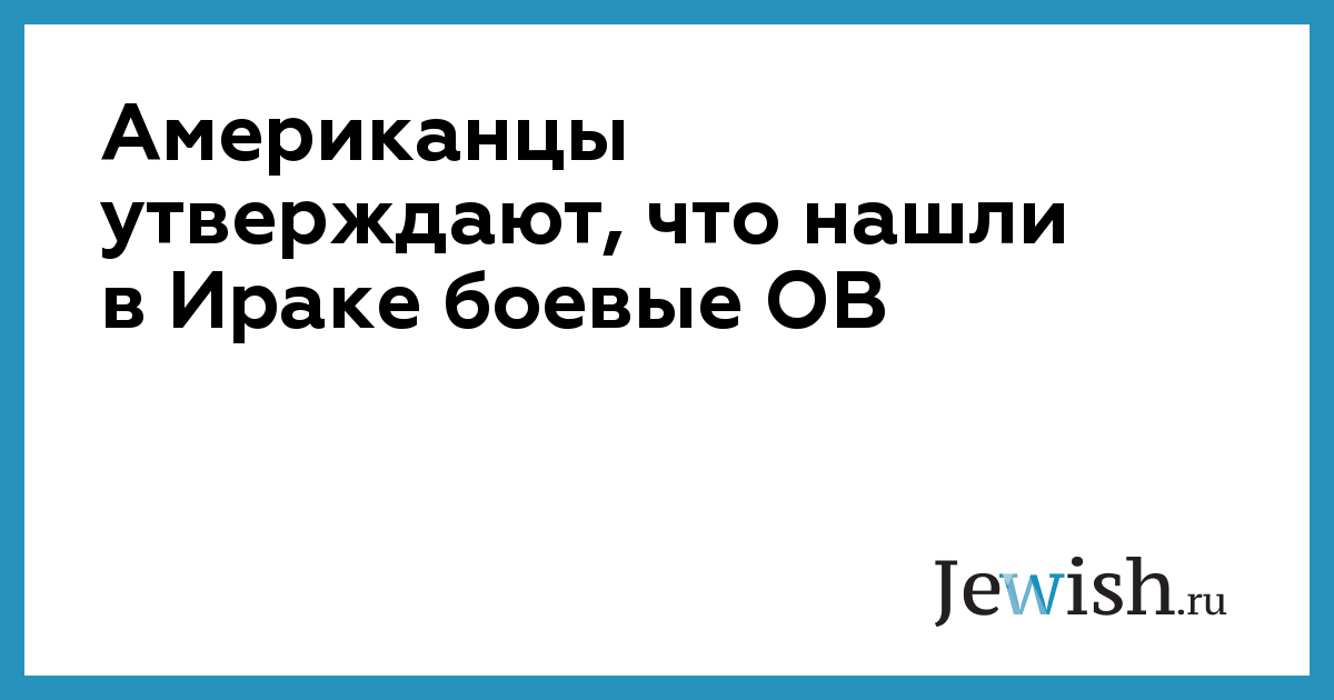 Американцы утверждают, что нашли в Ираке боевые ОВ