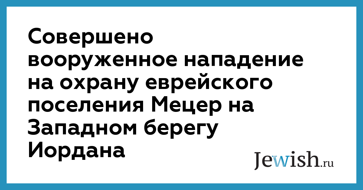 Совершено вооруженное нападение на охрану еврейского поселения Мецер на Западном берегу Иордана