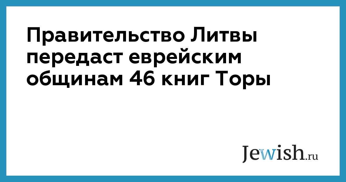 Согласно постановлению правительства, действующим в Литве еврейским религиозным общинам будут переданы 10 книг Торы. Кроме того, 36 книг и их фрагментов будут переданы Иерусалимскому еврейскому религиозному обществу Hechal Schlomo. Это будет уже вторая партия Тор, передаваемая Литвой еврейским религиозным общинам. Год назад через Hechal Schlomo зарубежным еврейским религиозным общинам были переданы 309 Тор и их фрагментов. Торы — священные иудейские книги — были спасены сотрудниками бывшей Литовской книжной палаты, в последние годы они хранились в Литовской национальной библиотеке им. Мартинаса Мажвидаса. Два года назад сейм Литвы принял закон о передаче Тор зарубежным еврейским религиозным организациям, сообщает NEWSru.com