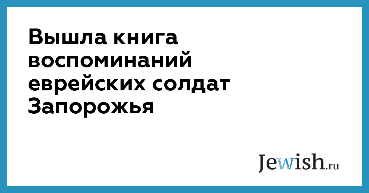 Вышла книга воспоминаний еврейских солдат Запорожья