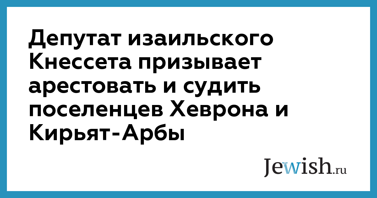 Депутат изаильского Кнессета призывает арестовать и судить поселенцев Хеврона и Кирьят-Арбы