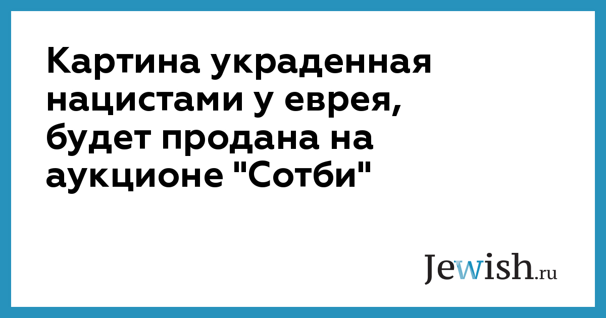 Картина украденная нацистами у еврея, будет продана на аукционе "Сотби"