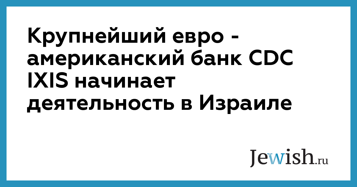 Крупнейший евро — американский банк CDC IXIS начинает деятельность в Израиле