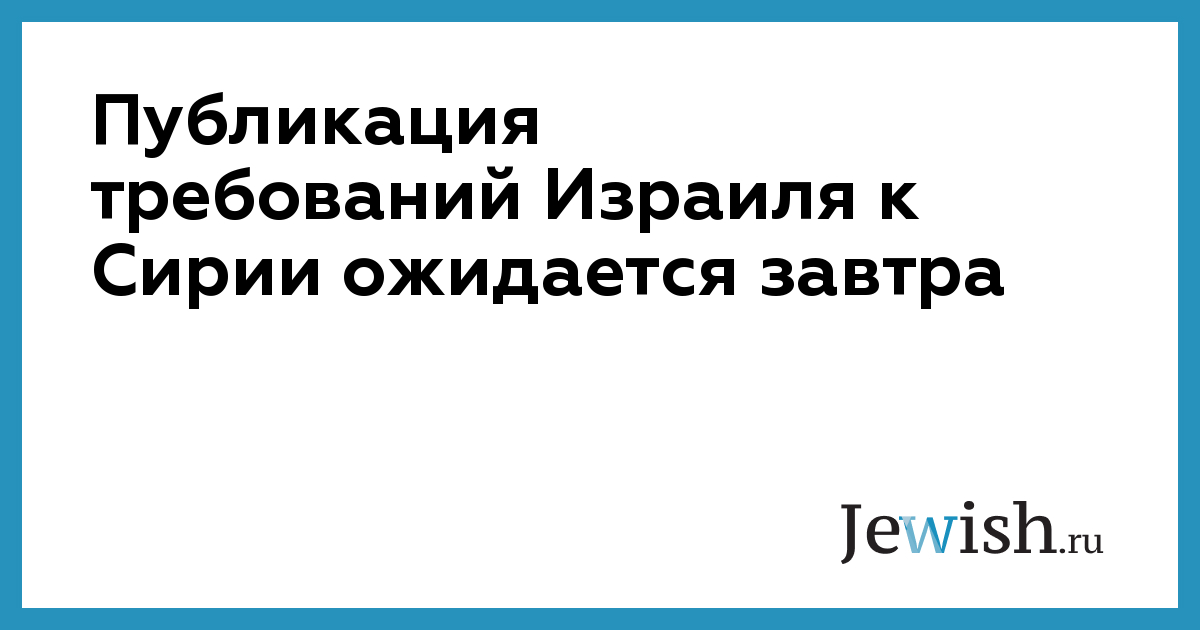 В среду ожидается официальная публикация требований Израиля к Сирии, среди которых — вывод боевиков "Хезболлах" из южного Ливана и закрытие представительств террористических группировок ХАМАС и "Исламский джихад" в Дамаске.