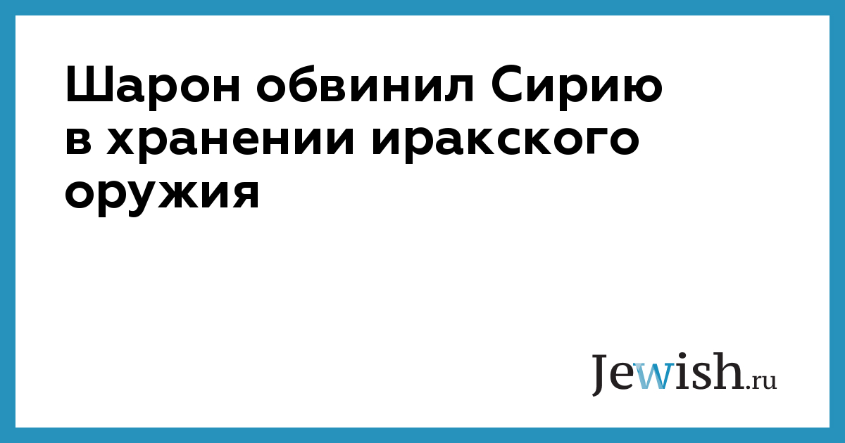 В сегодняшнем интервью газете "Едиот Ахронот" Шарон опять повторил свое обвинение в адрес Сирии в том, что перед войной в Ираке Дамаск разместил на своей территории значительную часть иракских вооружений, в том числе, возможно, и оружие массового уничтожения.