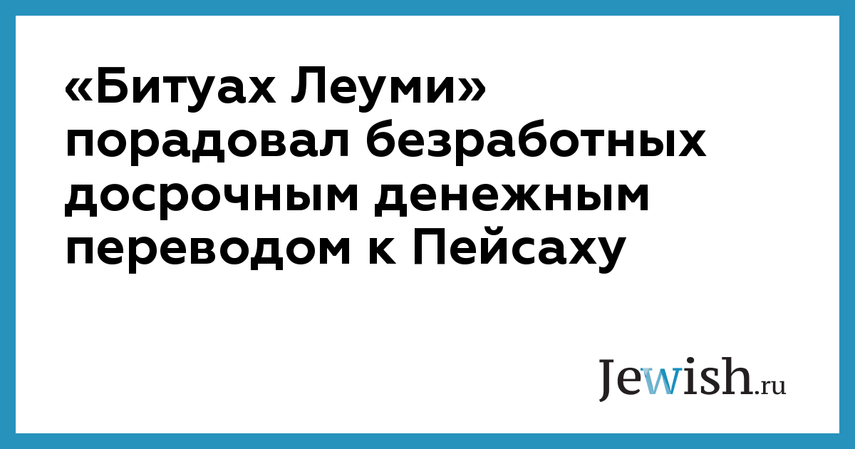 «Битуах Леуми» порадовал безработных досрочным денежным переводом к Пейсаху