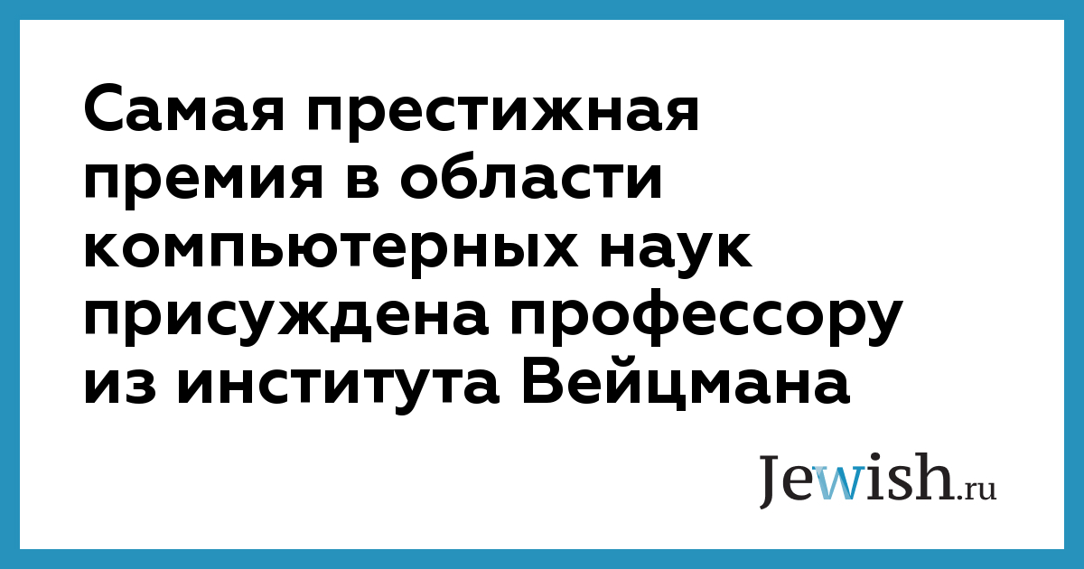 Самая престижная премия в области компьютерных наук присуждена профессору из института Вейцмана