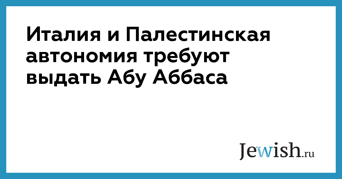 Рим уже обращался с просьбой о выдаче Аббаса к правительствам Египта и Иордании, где, по некоторым данным, мог находиться разыскиваемый палестинец, сообщает France Presse. "Теперь мы знаем, что он задержан в Ираке, но находится в руках американских властей. Нужно разрешить юридическую проблему, определив, кому адресовать просьбу об экстрадиции, и мы сделаем это как можно быстрее", — подчеркнул министр.