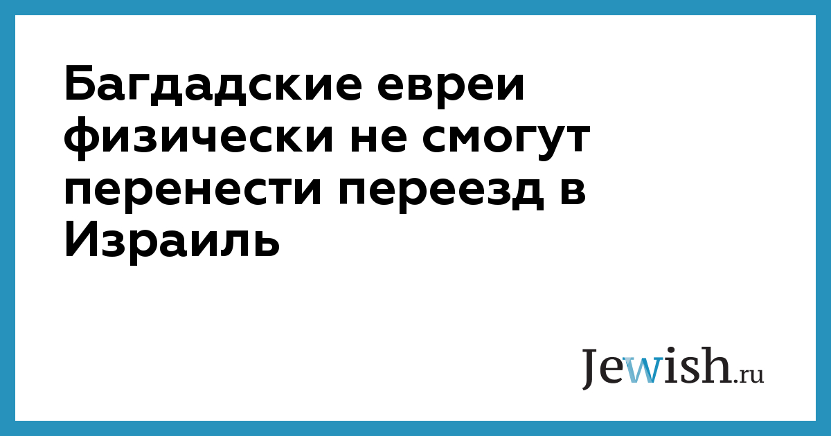 Багдадские евреи физически не смогут перенести переезд в Израиль