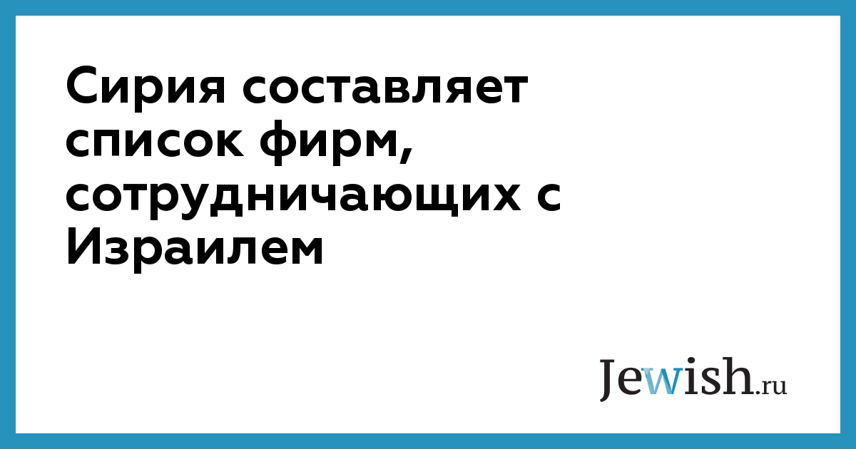 Сирия составляет список фирм, сотрудничающих с Израилем