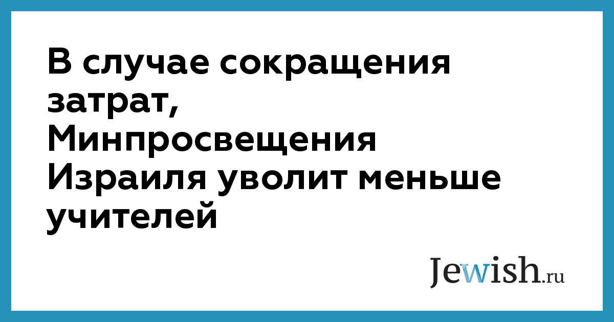 В случае сокращения затрат, Минпросвещения Израиля уволит меньше учителей