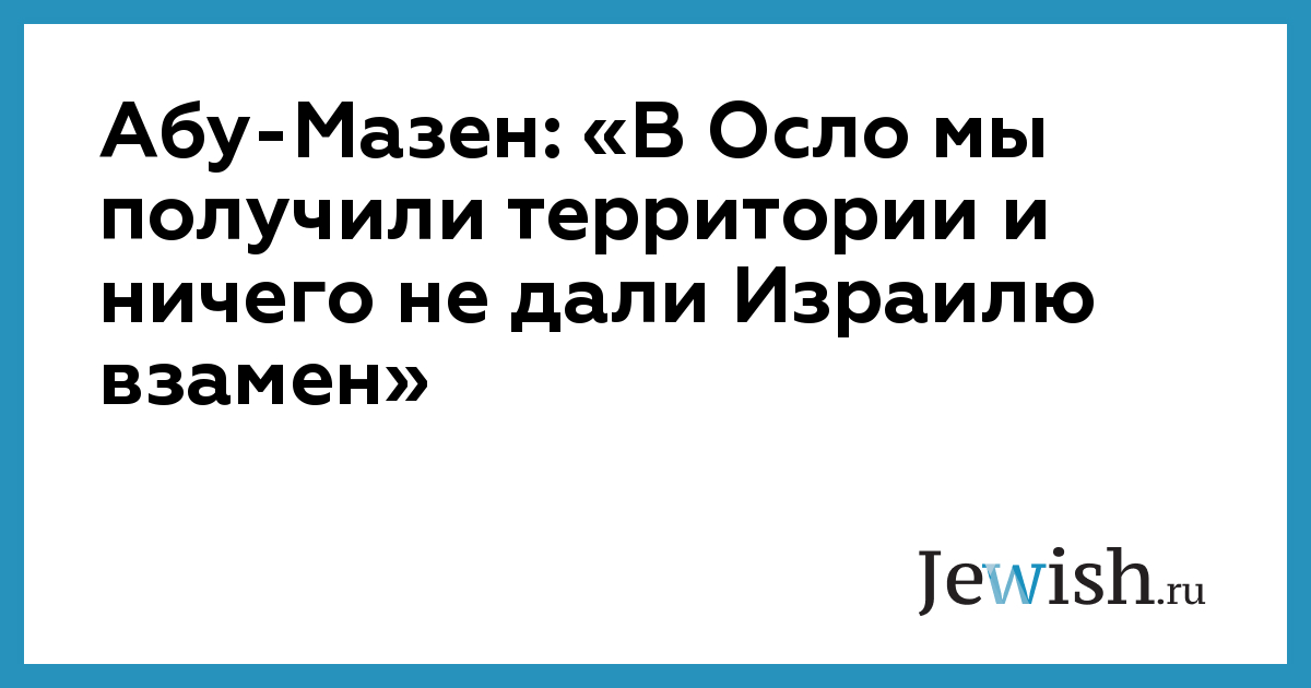 Абу-Мазен: «В Осло мы получили территории и ничего не дали Израилю взамен»