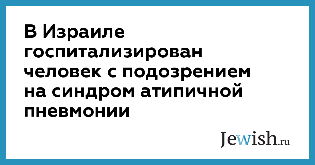 В Израиле госпитализирован человек с подозрением на синдром атипичной пневмонии