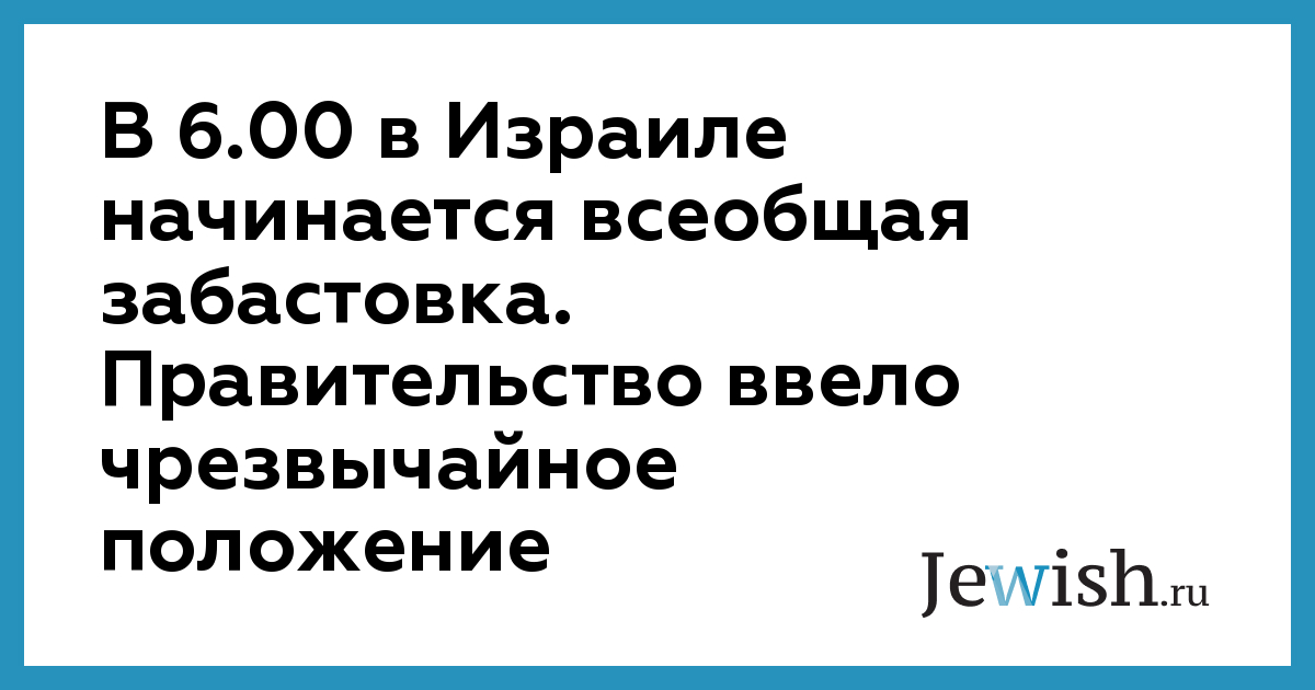 В 6.00 в Израиле начинается всеобщая забастовка. Правительство ввело чрезвычайное положение