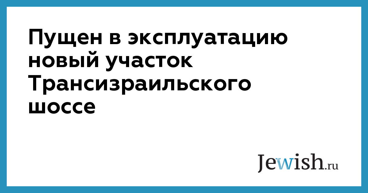 Пущен в эксплуатацию новый участок Трансизраильского шоссе