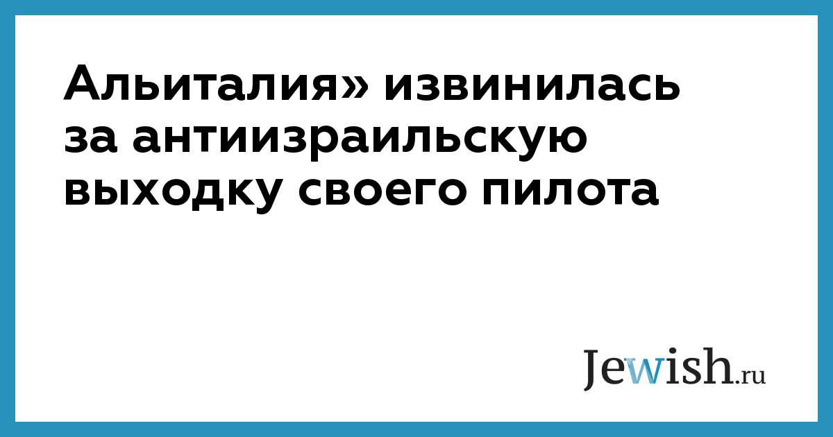 Альиталия» извинилась за антиизраильскую выходку своего пилота