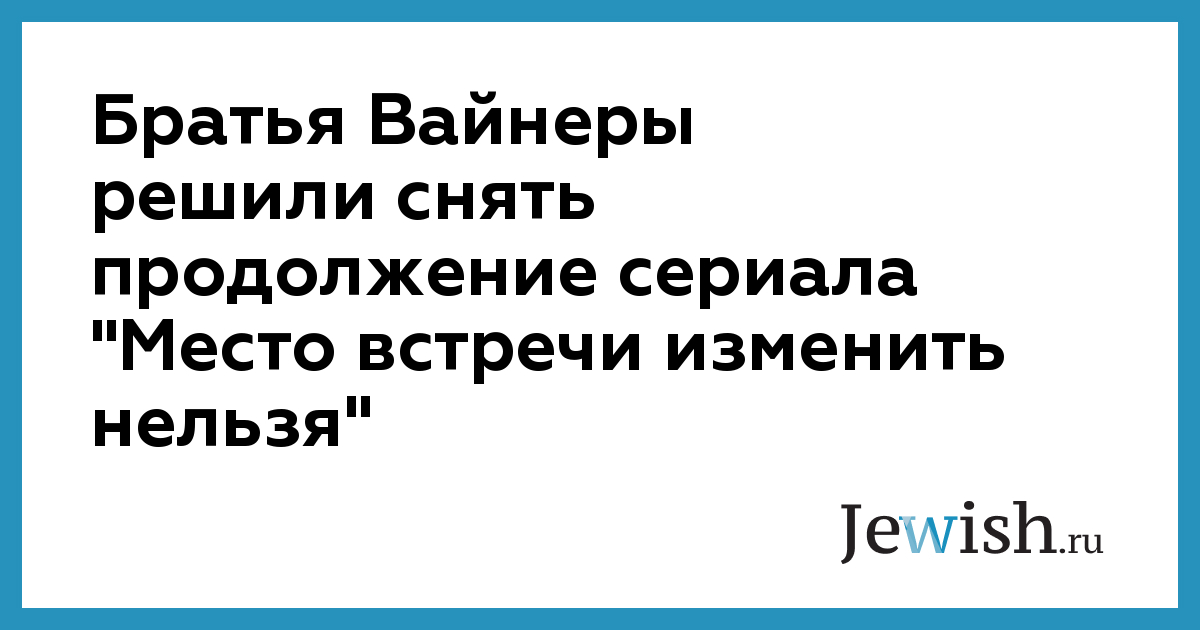 Братья Вайнеры решили снять продолжение сериала "Место встречи изменить нельзя"