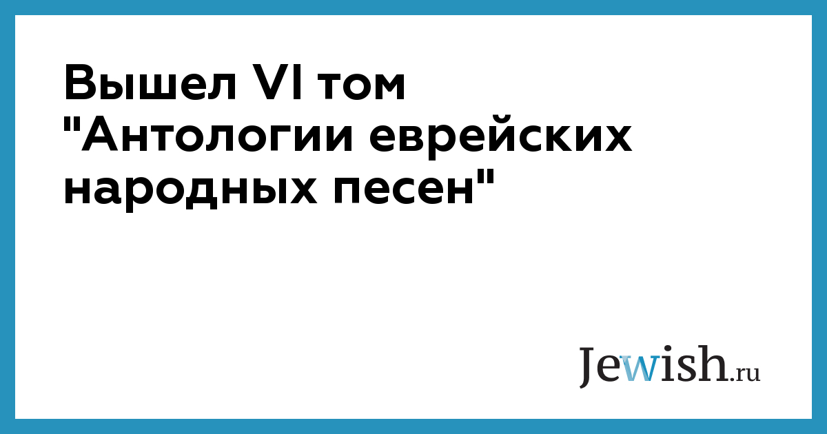 Вышел VI том "Антологии еврейских народных песен"