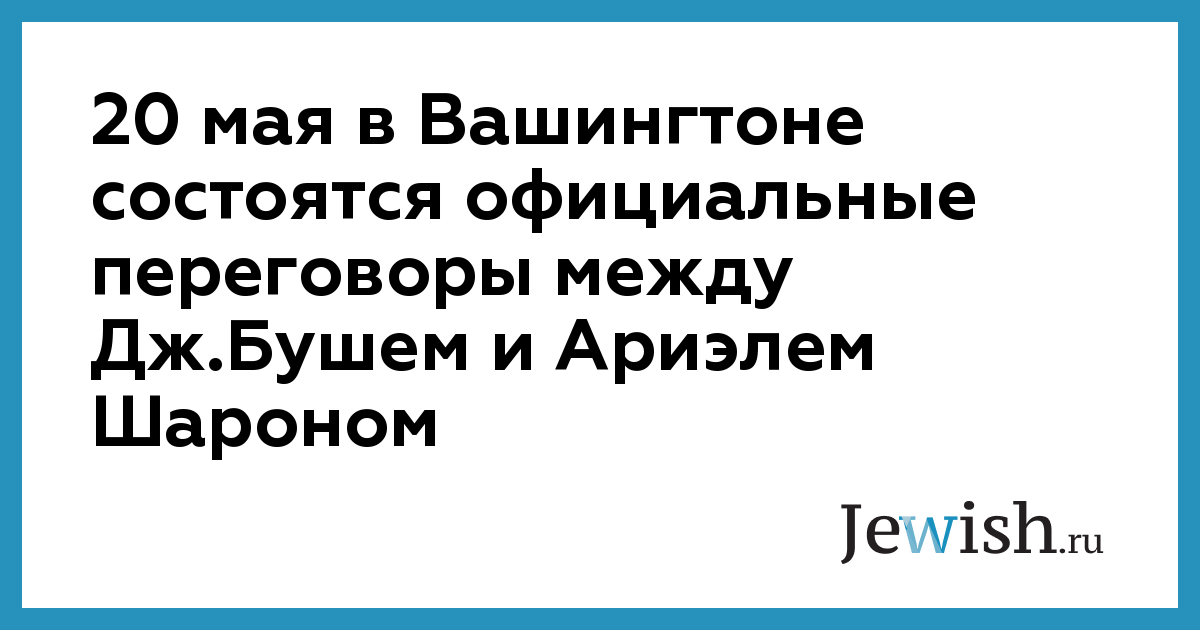20 мая в Вашингтоне состоятся официальные переговоры между Дж.Бушем и Ариэлем Шароном