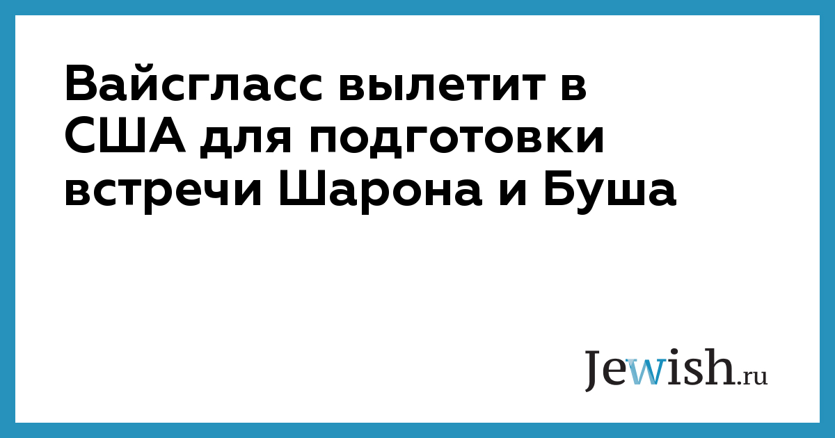 Вайсгласс вылетит в США для подготовки встречи Шарона и Буша