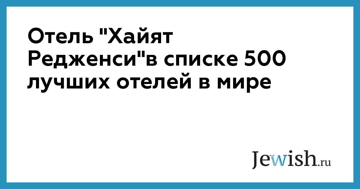 Отель "Хайят Редженси"в списке 500 лучших отелей в мире