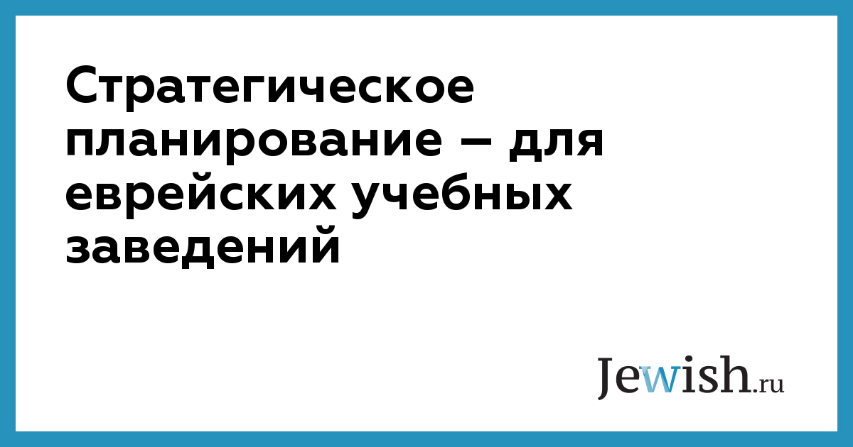 Стратегическое планирование – для еврейских учебных заведений