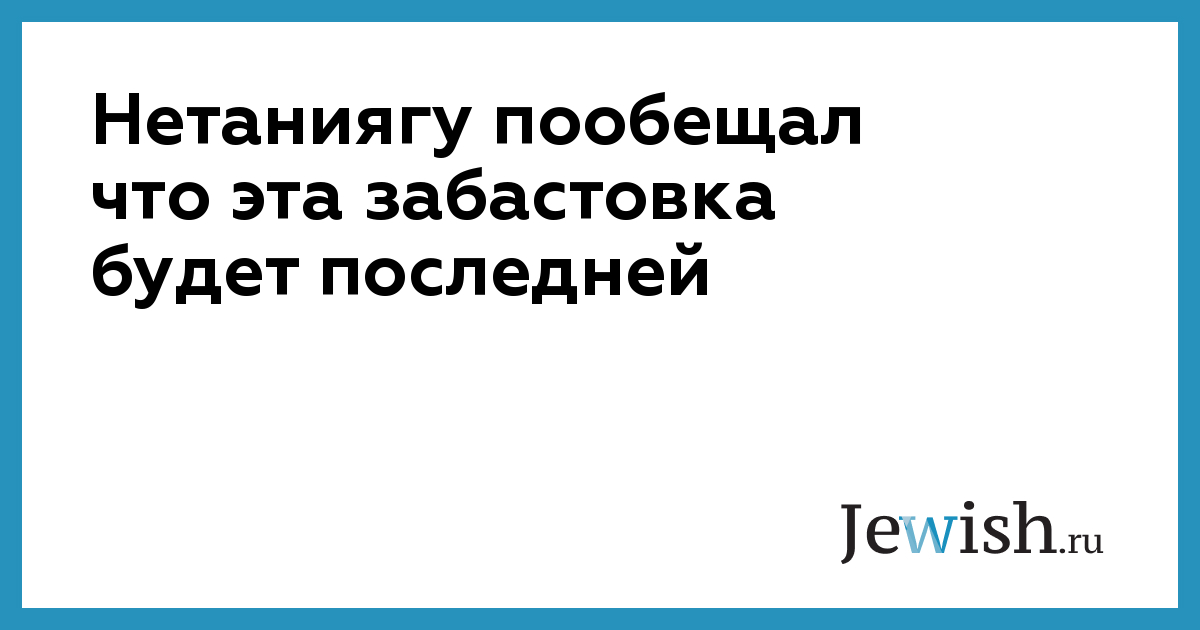 "Эра профсоюзов-монополистов прошла, — сказал Нетаниягу. — Это просто вопрос времени. Я полагаю, что сейчас вы можете наблюдать последнюю всеобщую забастовку, мы не позволим этому продолжаться. Мы не можем согласиться с ситуацией, в которой страна просто парализована. Граждане страны не должны подвергать свое здоровье риску из-за растущих гор мусора, страдать от того, что не могут вовремя вылететь или прилететь в Израиль".