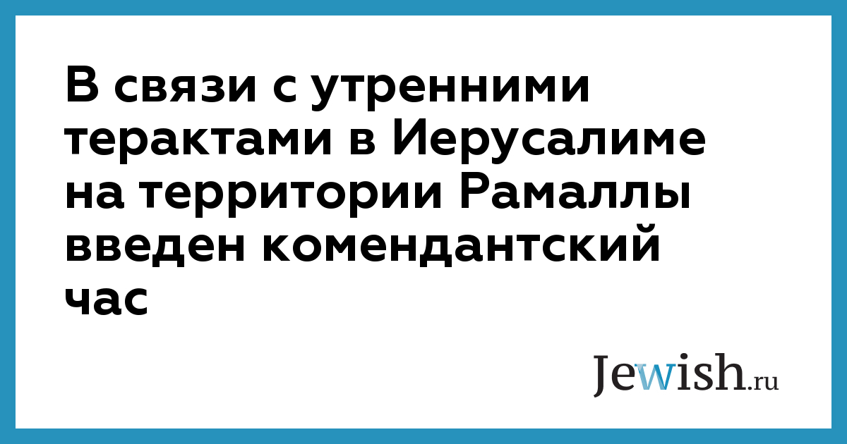 В связи с утренними терактами в Иерусалиме на территории Рамаллы введен комендантский час