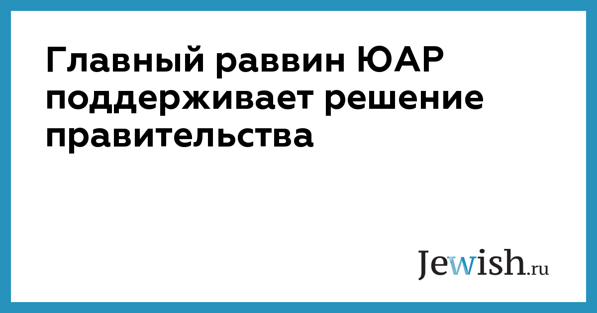 Главный раввин ЮАР поддерживает решение правительства