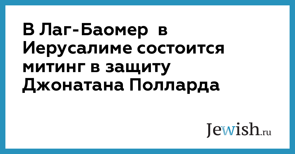 В Лаг-Баомер в Иерусалиме состоится митинг в защиту Джонатана Полларда
