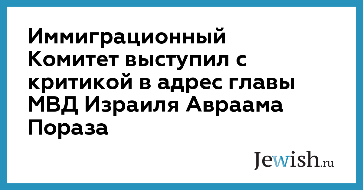 Иммиграционный Комитет выступил с критикой в адрес главы МВД Израиля Авраама Пораза