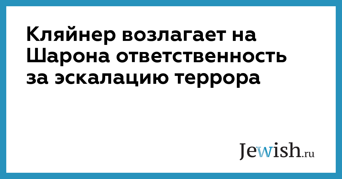 Кляйнер возлагает на Шарона ответственность за эскалацию террора