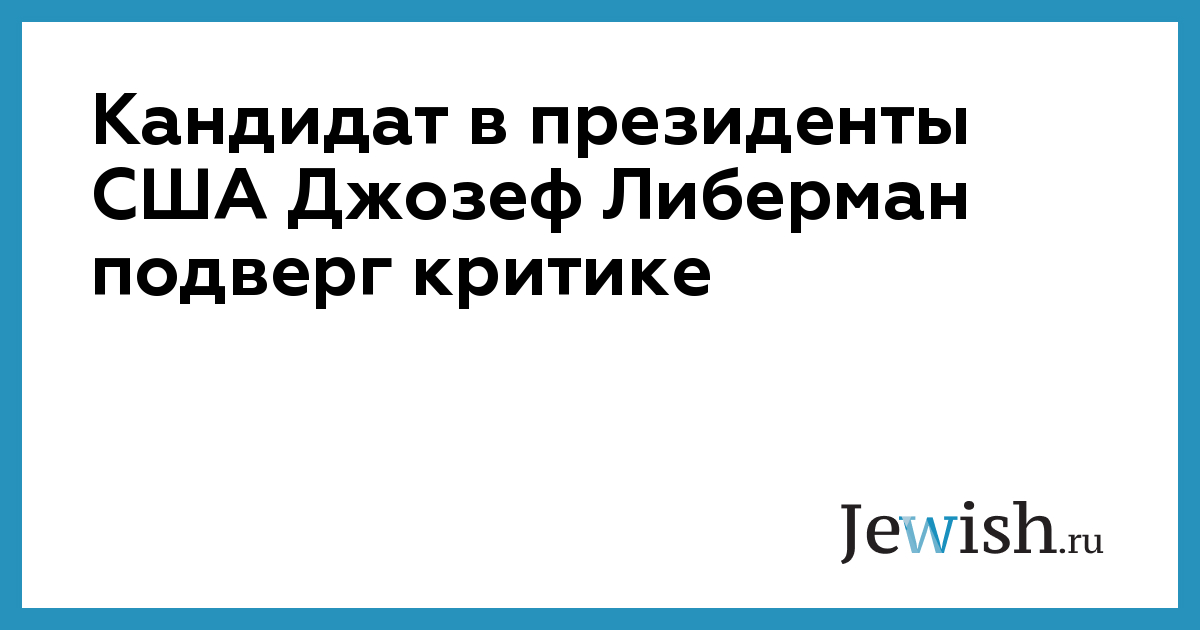 Кандидат в президенты США Джозеф Либерман подверг критике