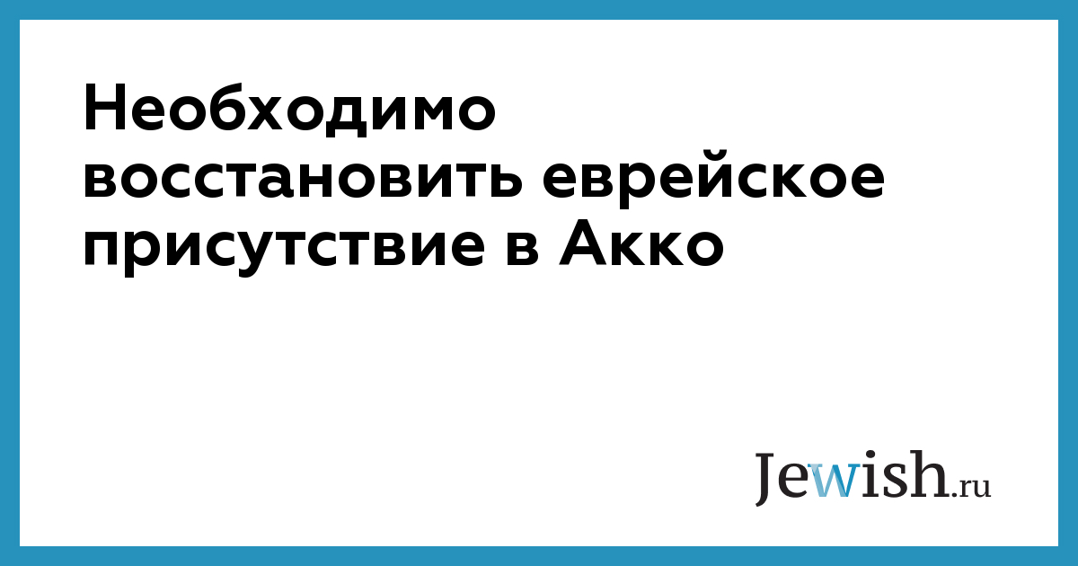 Необходимо восстановить еврейское присутствие в Акко