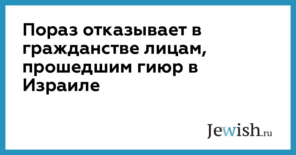 Пораз отказывает в гражданстве лицам, прошедшим гиюр в Израиле