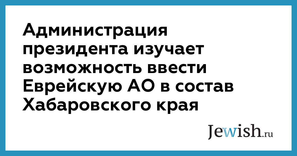 Администрация президента изучает возможность ввести Еврейскую АО в состав Хабаровского края