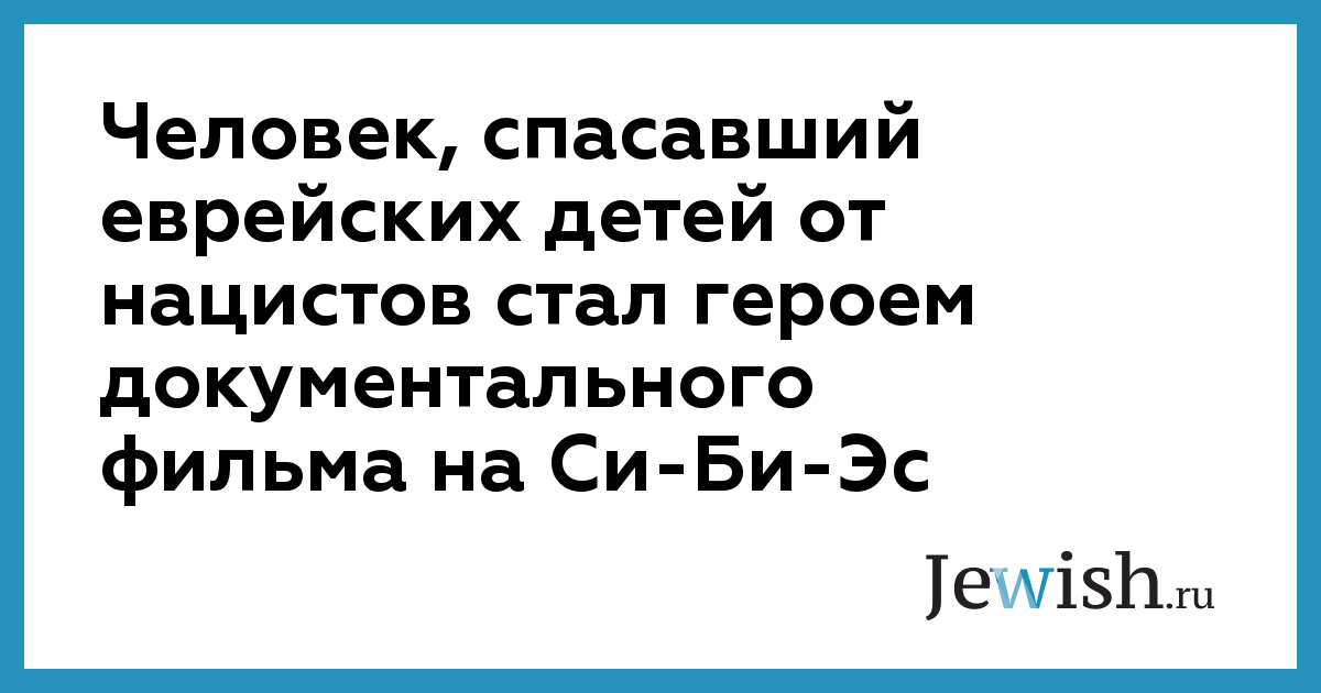 Человек, спасавший еврейских детей от нацистов стал героем документального фильма на Си-Би-Эс