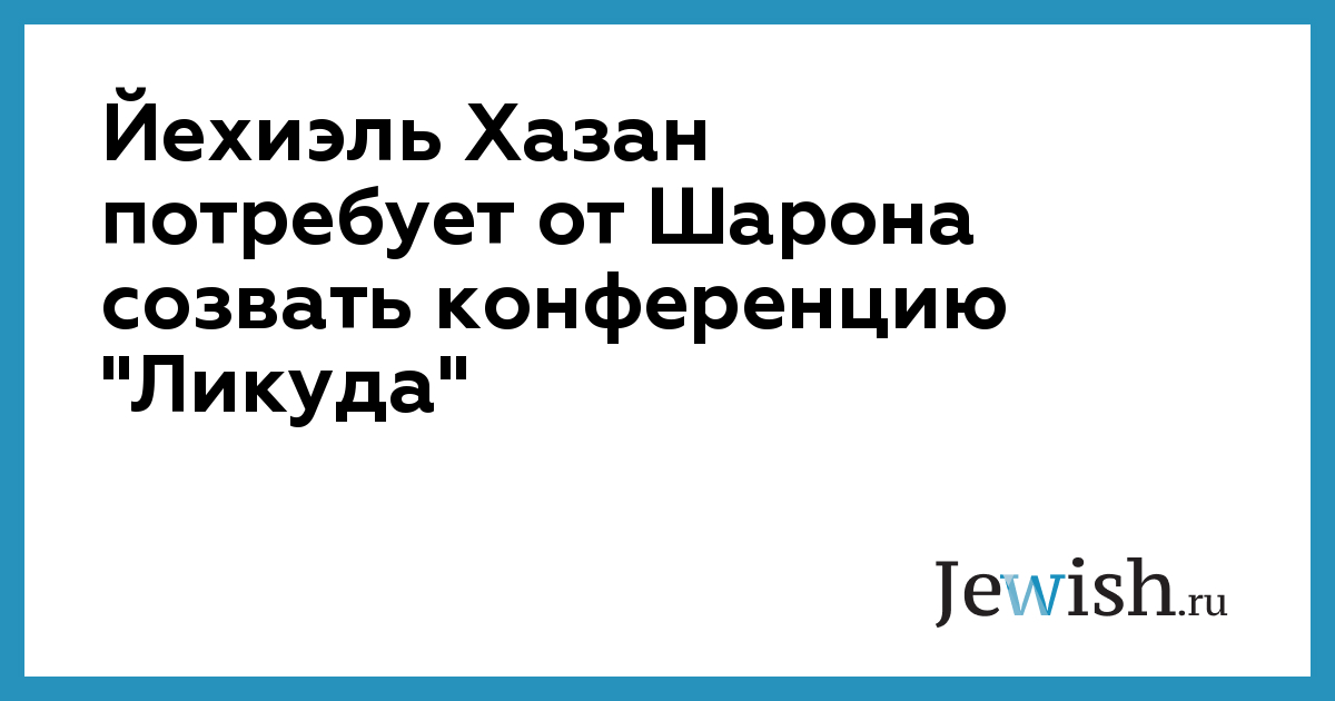 Йехиэль Хазан потребует от Шарона созвать конференцию "Ликуда"