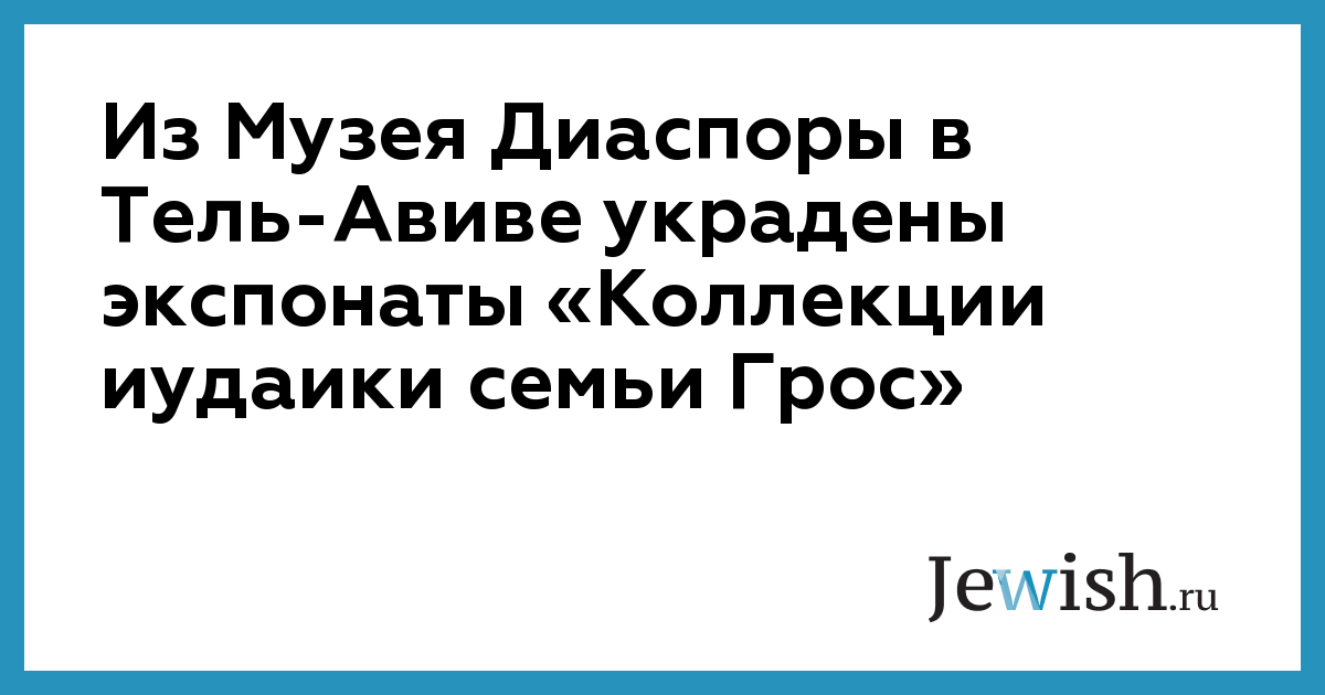 Из Музея Диаспоры в Тель-Авиве украдены экспонаты «Коллекции иудаики семьи Грос»
