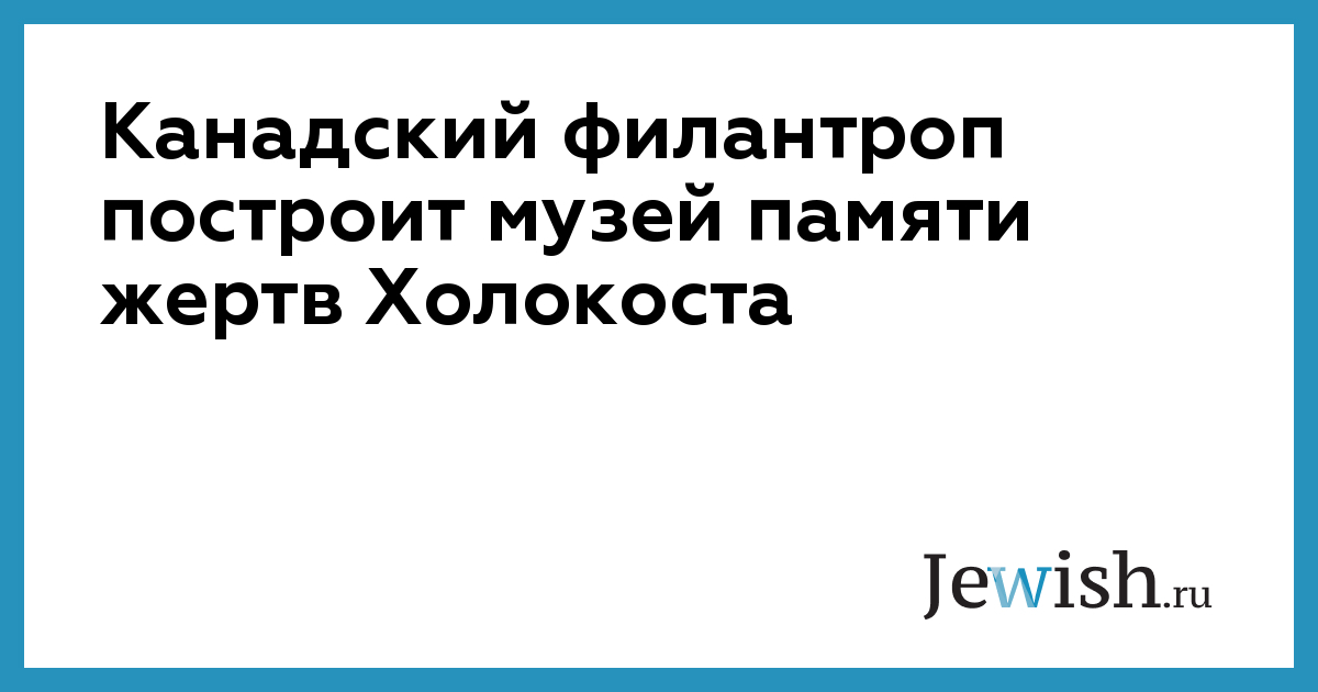 Канадский филантроп построит музей памяти жертв Холокоста