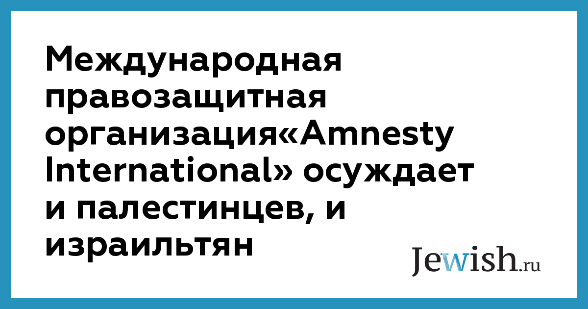 Международная правозащитная организация«Amnesty International» осуждает и палестинцев, и израильтян