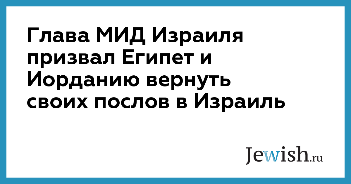 Глава МИД Израиля призвал Египет и Иорданию вернуть своих послов в Израиль