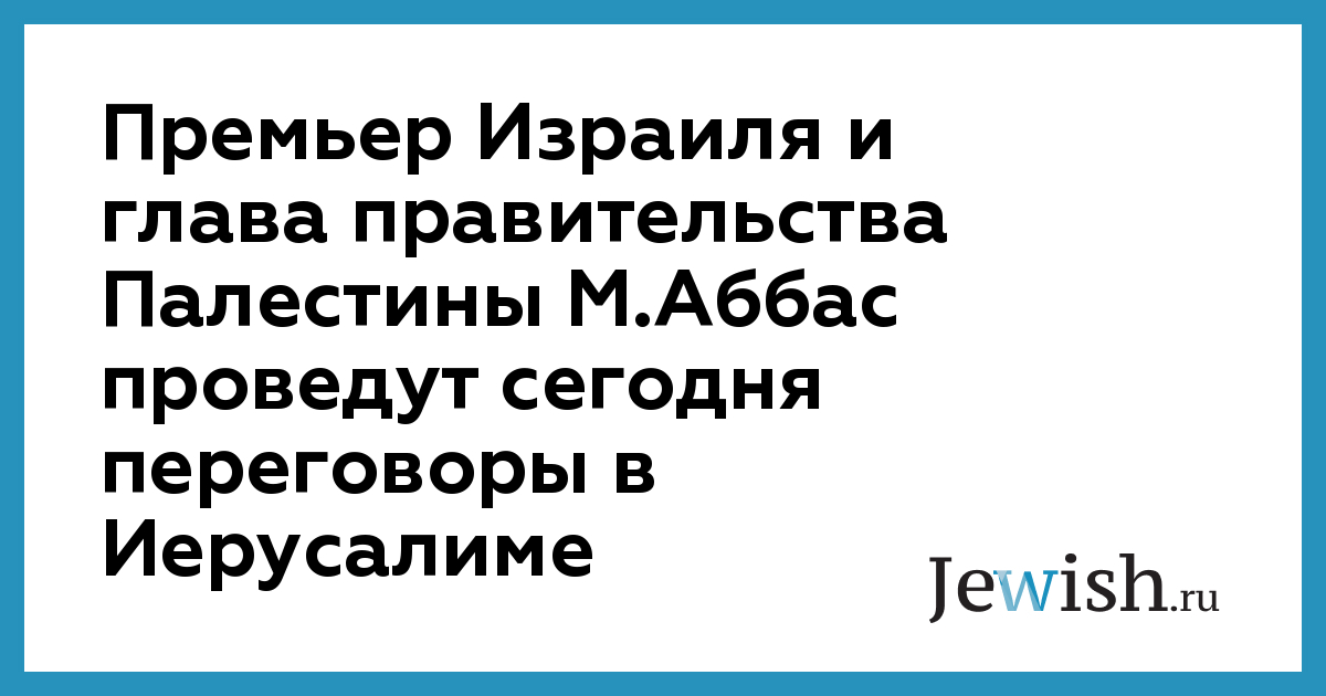 Премьер Израиля и глава правительства Палестины М.Аббас проведут сегодня переговоры в Иерусалиме