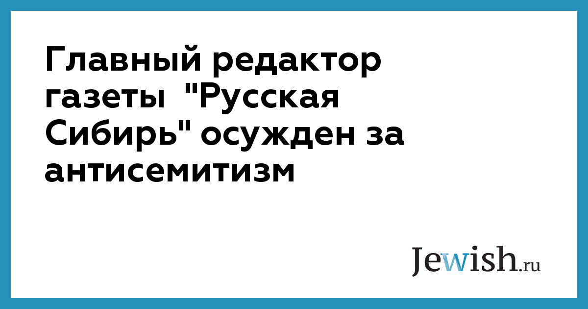 Главный редактор газеты "Русская Сибирь" осужден за антисемитизм