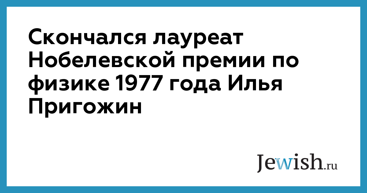 Скончался лауреат Нобелевской премии по физике 1977 года Илья Пригожин