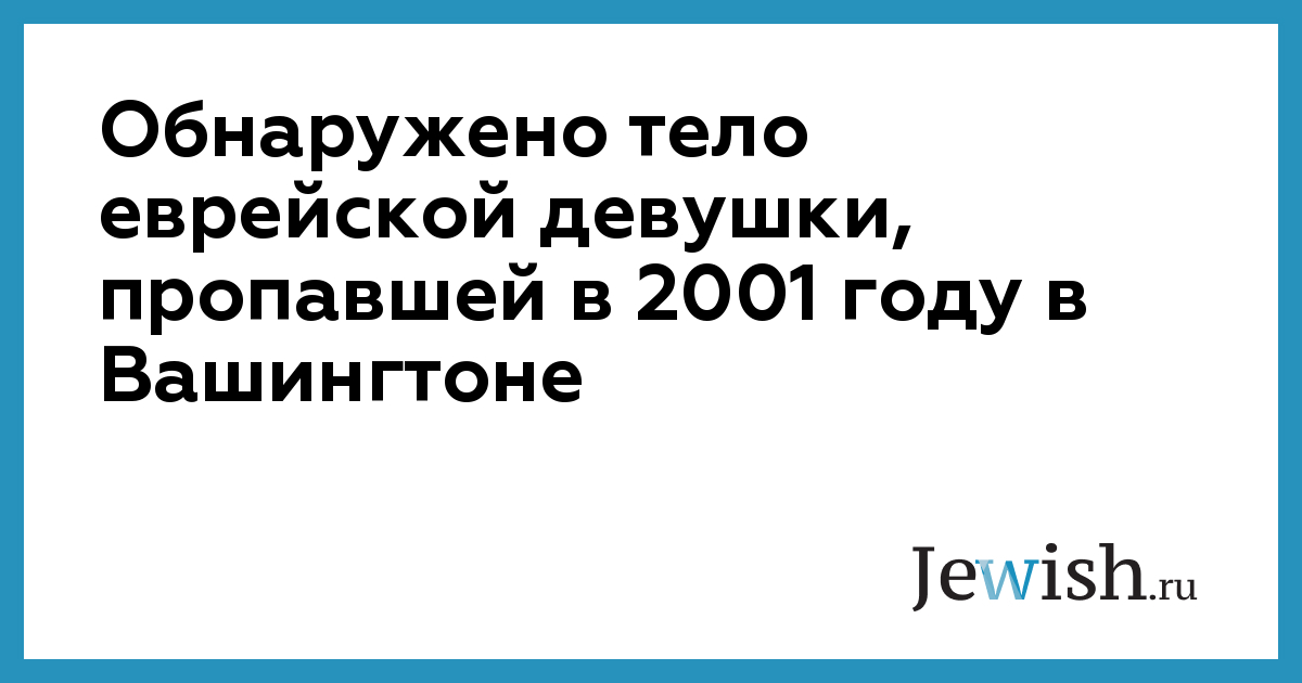 Обнаружено тело еврейской девушки, пропавшей в 2001 году в Вашингтоне
