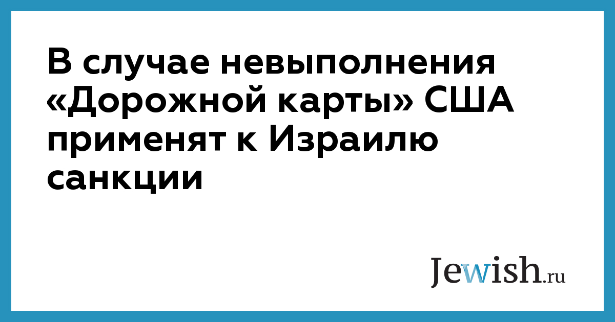 В случае невыполнения «Дорожной карты» США применят к Израилю санкции