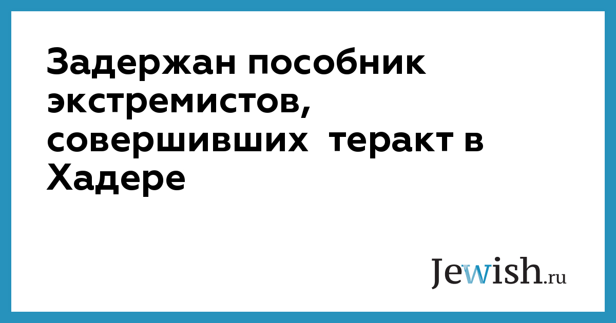 Задержан пособник экстремистов, совершивших теракт в Хадере