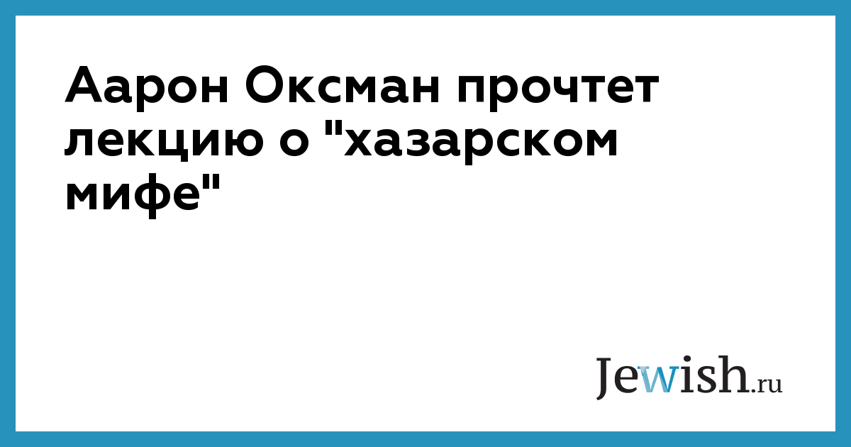 Аарон Оксман прочтет лекцию о "хазарском мифе"