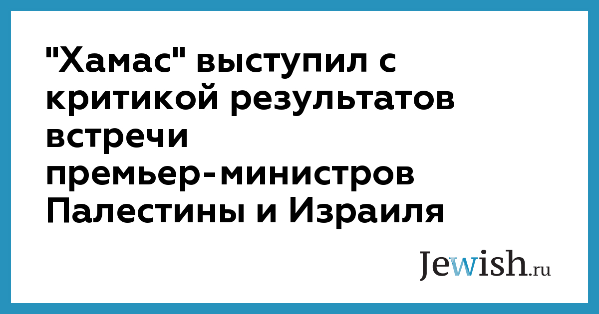 "Хамас" выступил с критикой результатов встречи премьер-министров Палестины и Израиля